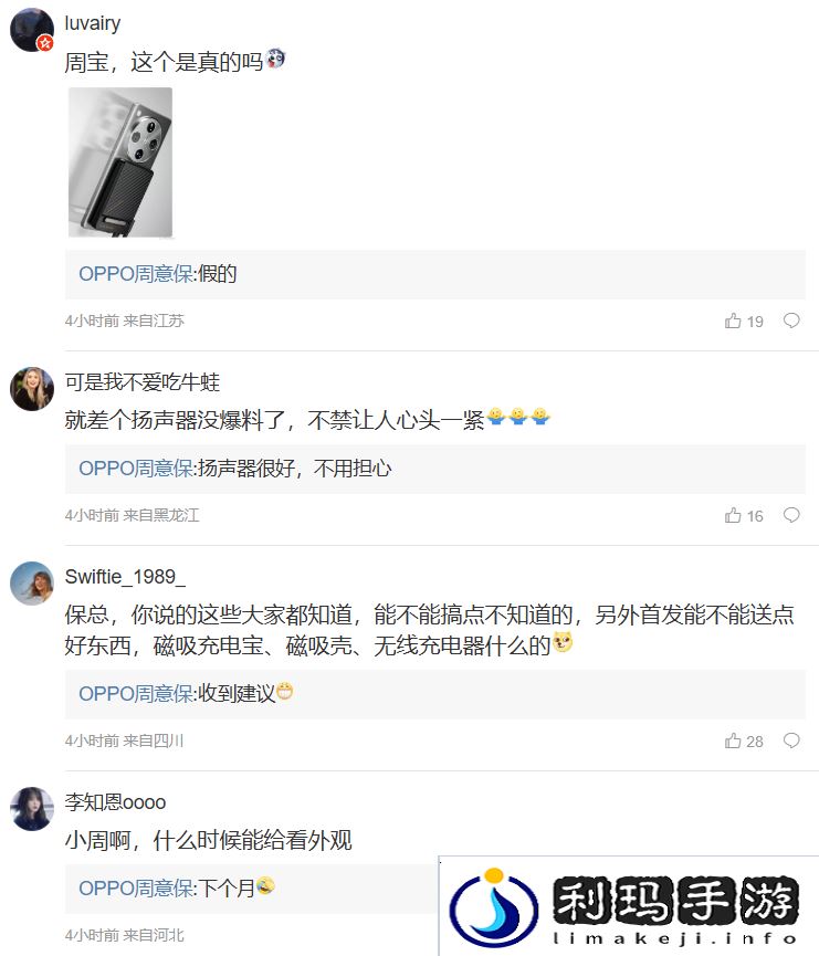 周意保还在评论区回复了部分网友的问题:针对用户发布新机渲染图,他再次进行了否认并直言“假的”;针对新机外观何时公布,他表示“下个月”。