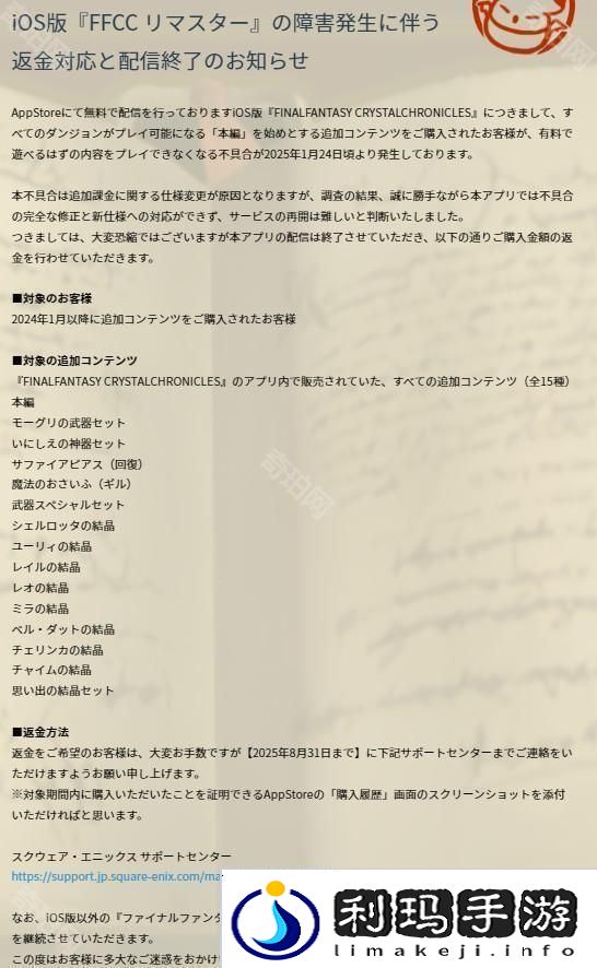 游戏下架退款通知地址://www.finalfantasy.jp/ffcc/news/2025/02/20201222.html