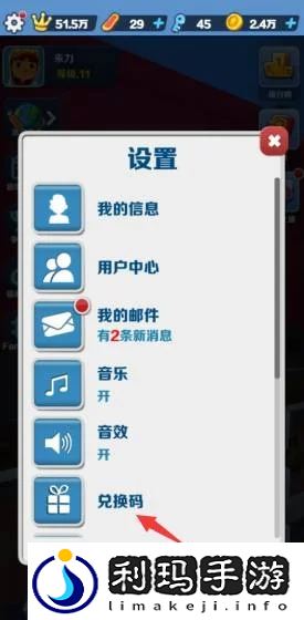 2、然后在设置列表中点击兑换码选项进入。