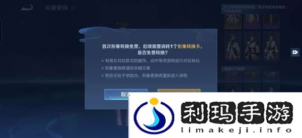 点击英雄-任意元流之子-皮肤-衣橱-形象即可免费更换性别,实装也将全面更新,但每90天才可以转换一次,也就是每个赛季最多转一次。
