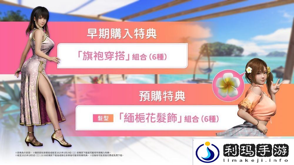 ※若已购买《生死格斗:沙滩排球 维纳斯璀璨假期》一般版、亚洲限定特典版或亚洲限定典藏版,「暂停时间沙漏」功能可能在购买 《生死格斗:沙滩排球 维纳斯璀璨假期》数位豪华版 升级包前即已解锁,请留意。