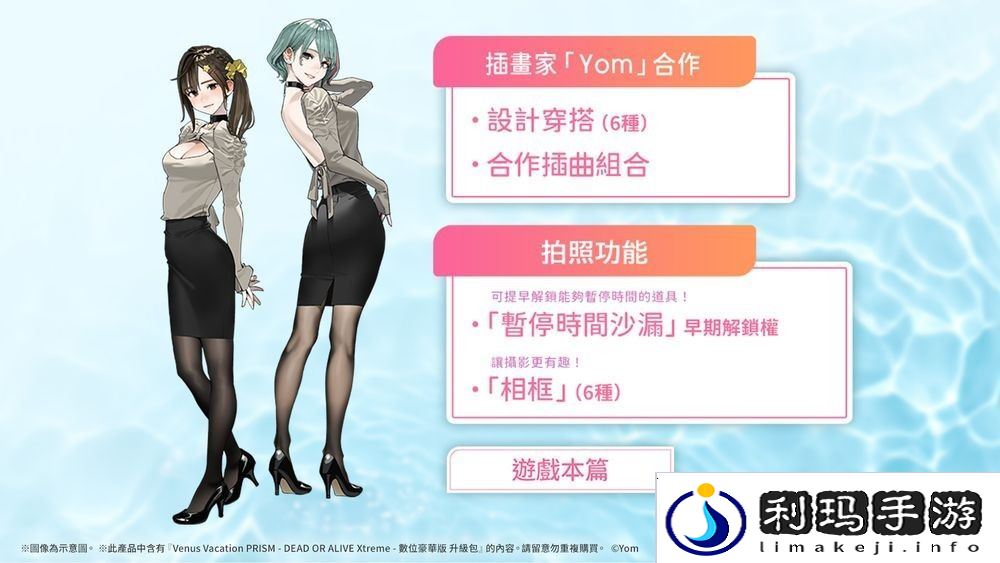 与超人气插画家「Yom(よむ)」的联动企划也同步公开!在「数位豪华版」里,可以享受由 Yom 亲自设计的办公室风格穿搭及特别篇章,这次也公开「海咲」与「七海」的新绘插画。此外,「亚洲限定特典版」与「亚洲限定典藏版」中还附有 Yom 亲自绘制的桌埝与亚洲限定的「夏日恋情」女孩抱枕等丰富内容。