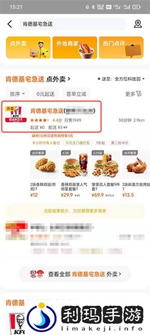 1、首先下载美团外卖APP,搜索肯德基宅急送;