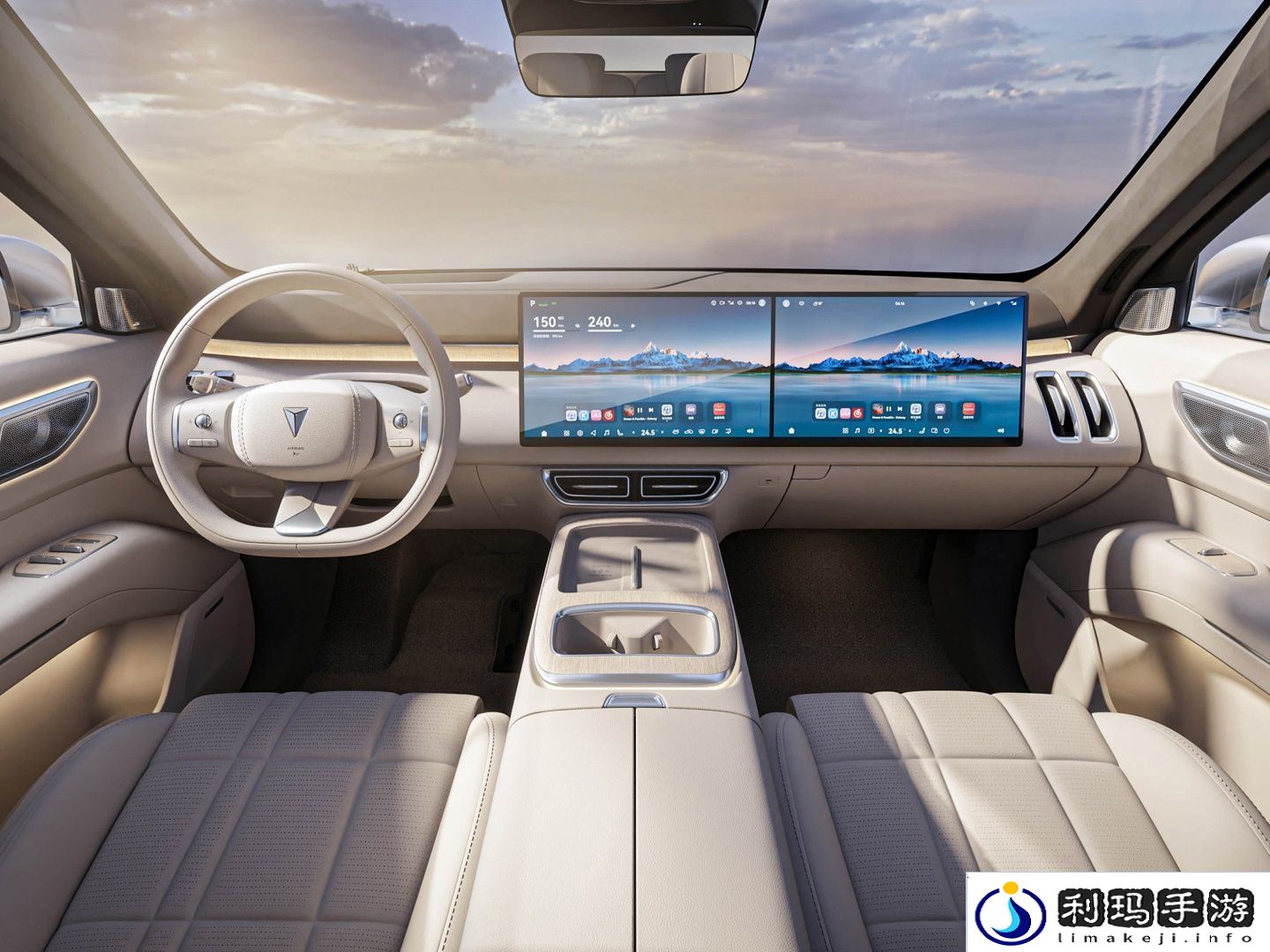 车辆前排配备2.5K 超高清双 15.6 英寸巨幕联屏,1000nit 超高亮度,配备 43 英寸 AR-HUD,前排座椅支持 8 点式按摩、通风、加热、10 层包覆。