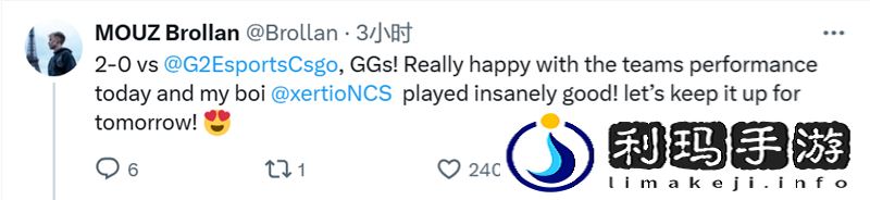 G2和MOUZ战队部分选手分享了自己的赛后动态。
